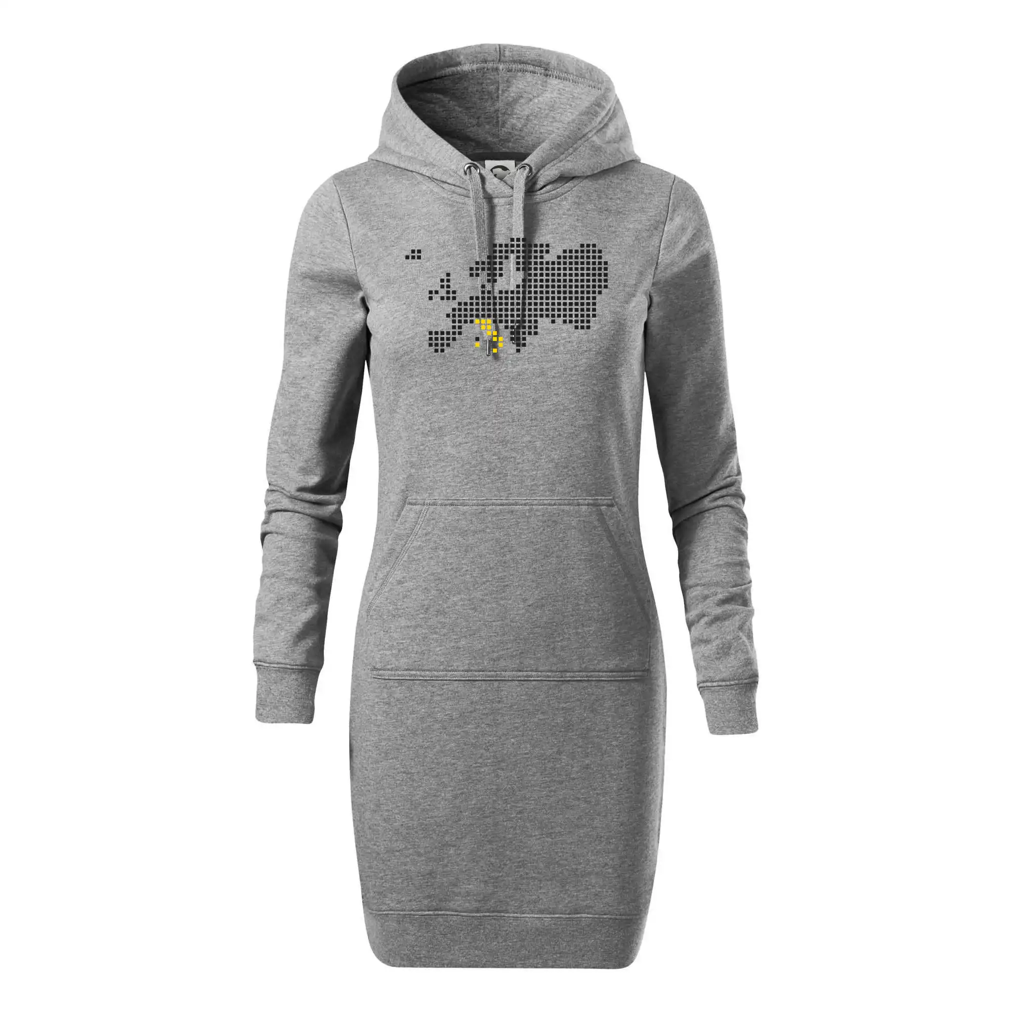 Dámske mikinové šaty MALFINI Snap 419 sú ideálnou voľbou pre ženy, ktoré hľadajú pohodlný a štýlový kúsok na voľný čas alebo každodenné nosenie. Ľahko vypasovaný strih s bočnými švami podčiarkuje ženskú siluetu, zatiaľ čo kapucňa s podšívkou a sťahovacou šnúrkou dodáva ležérny vzhľad. Šaty majú dĺžku nad kolená a sú vybavené našitým vreckom v štýle „klokanky“. Materiál je mäkký a príjemný na dotyk grâce à smesi bavlny a polyesteru s nepočesanou vnútornou stranou.