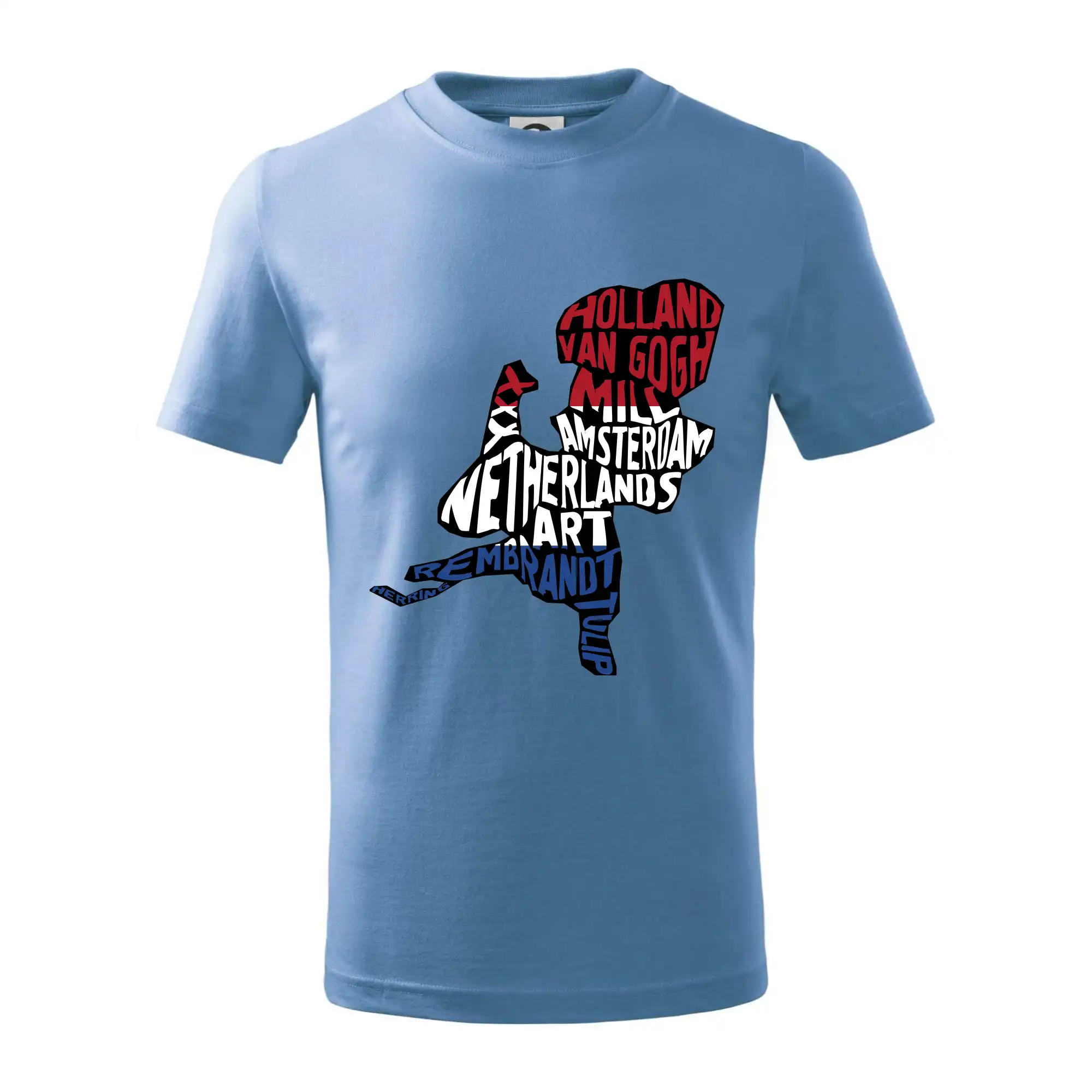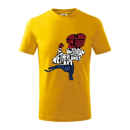 Detské tričko strednej gramáže s bočnými švami. Úzky priekrčník s prídavkom 5% elastanu. Vnútorná časť zadného priekrčníka začistená tkanou páskou. Spevnený ramenný šev.