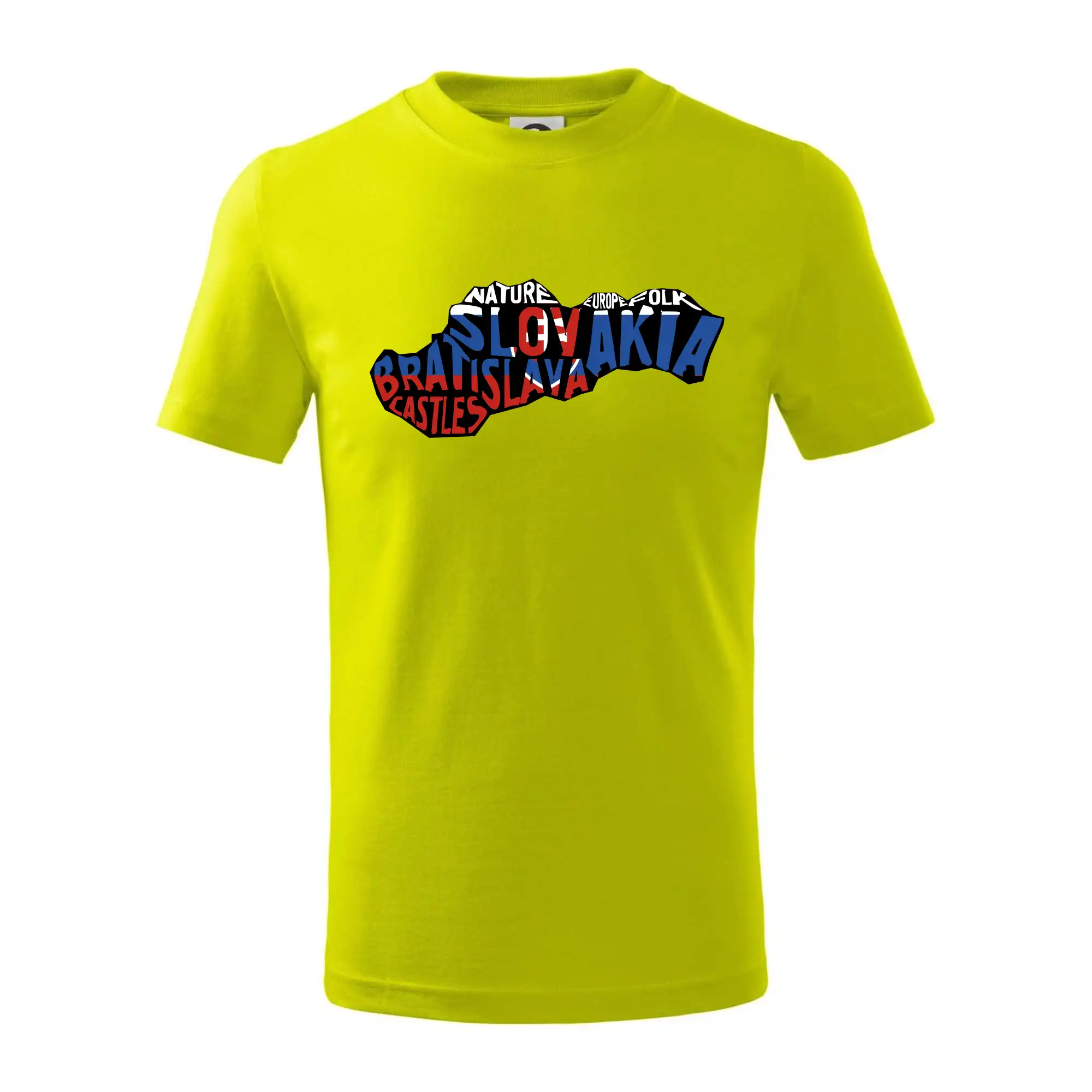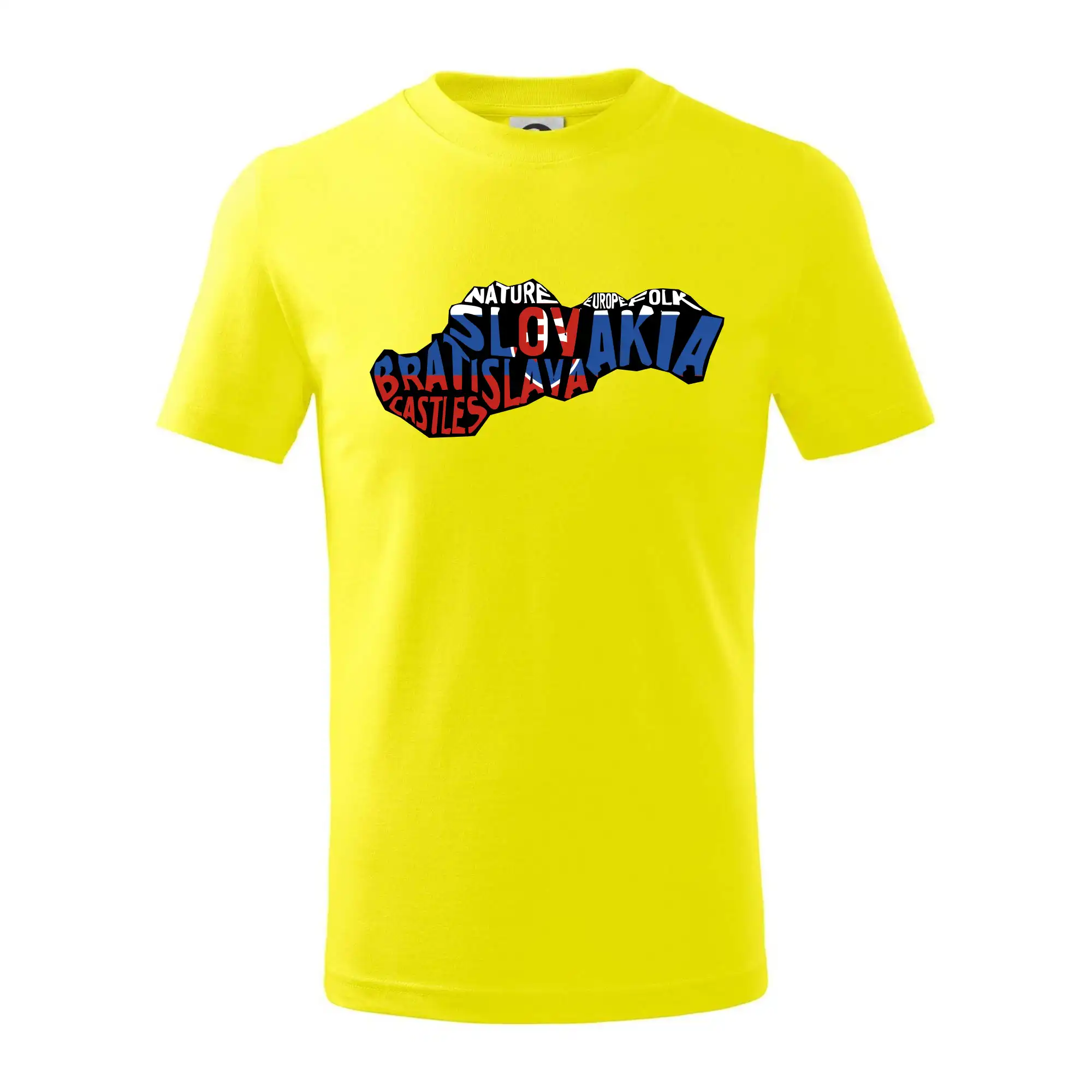 Detské tričko strednej gramáže s bočnými švami. Úzky priekrčník s prídavkom 5% elastanu. Vnútorná časť zadného priekrčníka začistená tkanou páskou. Spevnený ramenný šev.