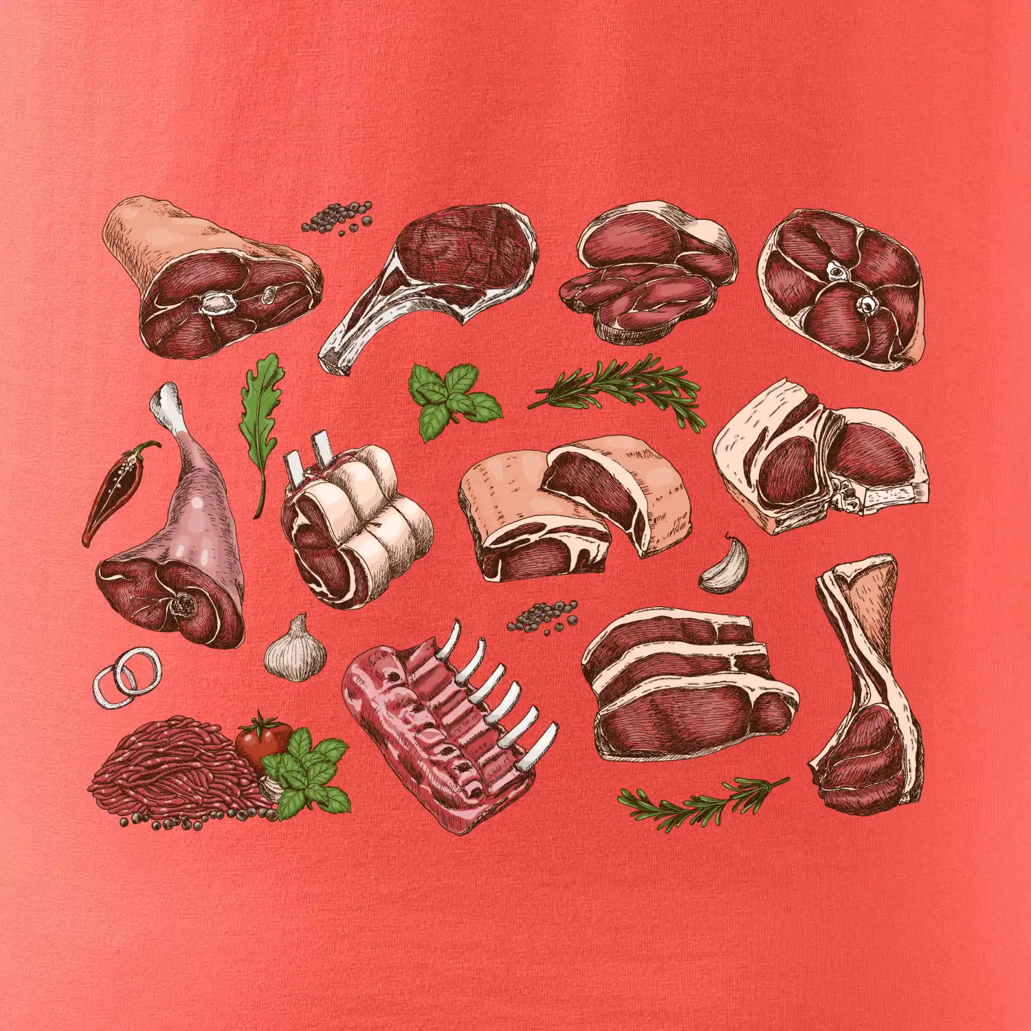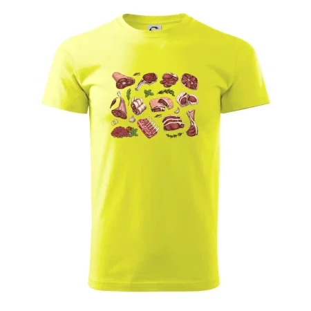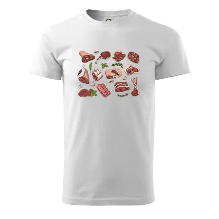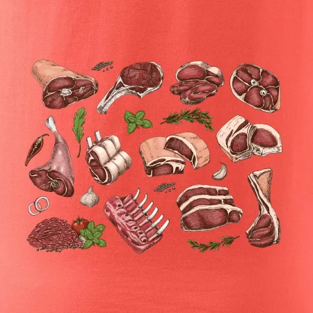 Tričko, ktoré je plné mäsa, by si mal zaobstarať každý kuchár. Na tričku nájdeš rebierka, stehno ale aj mleté mäso. Tričko pre kuchára, musí mať každý správny šéfkuchár aj kuchtík.