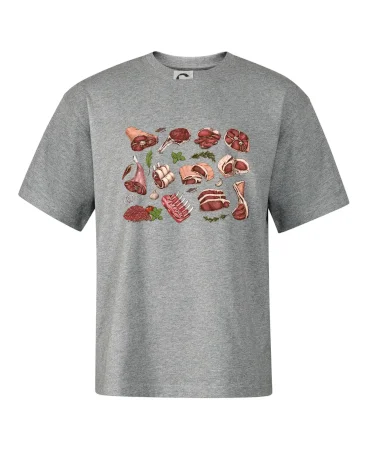 Tričko, ktoré je plné mäsa, by si mal zaobstarať každý kuchár. Na tričku nájdeš rebierka, stehno ale aj mleté mäso. Tričko pre kuchára, musí mať každý správny šéfkuchár aj kuchtík.