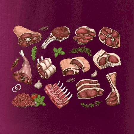 Tričko, ktoré je plné mäsa, by si mal zaobstarať každý kuchár. Na tričku nájdeš rebierka, stehno ale aj mleté mäso. Tričko pre kuchára, musí mať každý správny šéfkuchár aj kuchtík.