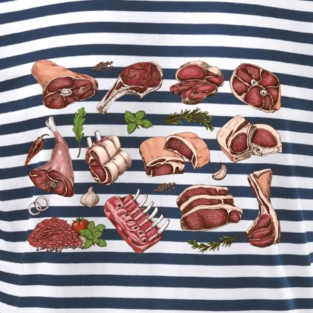 Tričko, ktoré je plné mäsa, by si mal zaobstarať každý kuchár. Na tričku nájdeš rebierka, stehno ale aj mleté mäso. Tričko pre kuchára, musí mať každý správny šéfkuchár aj kuchtík.