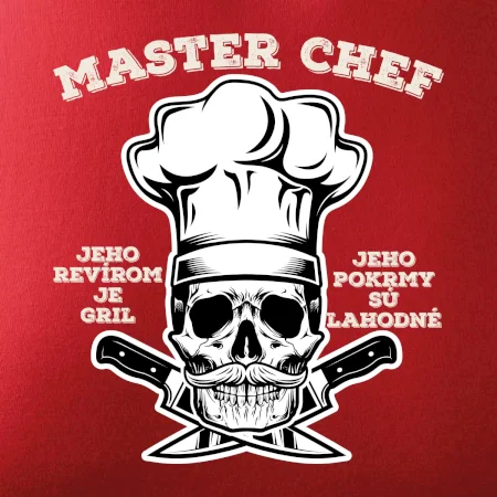 Tričko, na ktorom je kostra s nápisom Master chef, by si mal zaobstarať každý milovník varenia či grilovania. Či už je to tričko pre kuchára alebo majstra grilu na záhrade, jedlo bude určite chutnejšie! Tričko je vhodný darček pre každého, komu grilovanie a varenie nie sú cudzie.