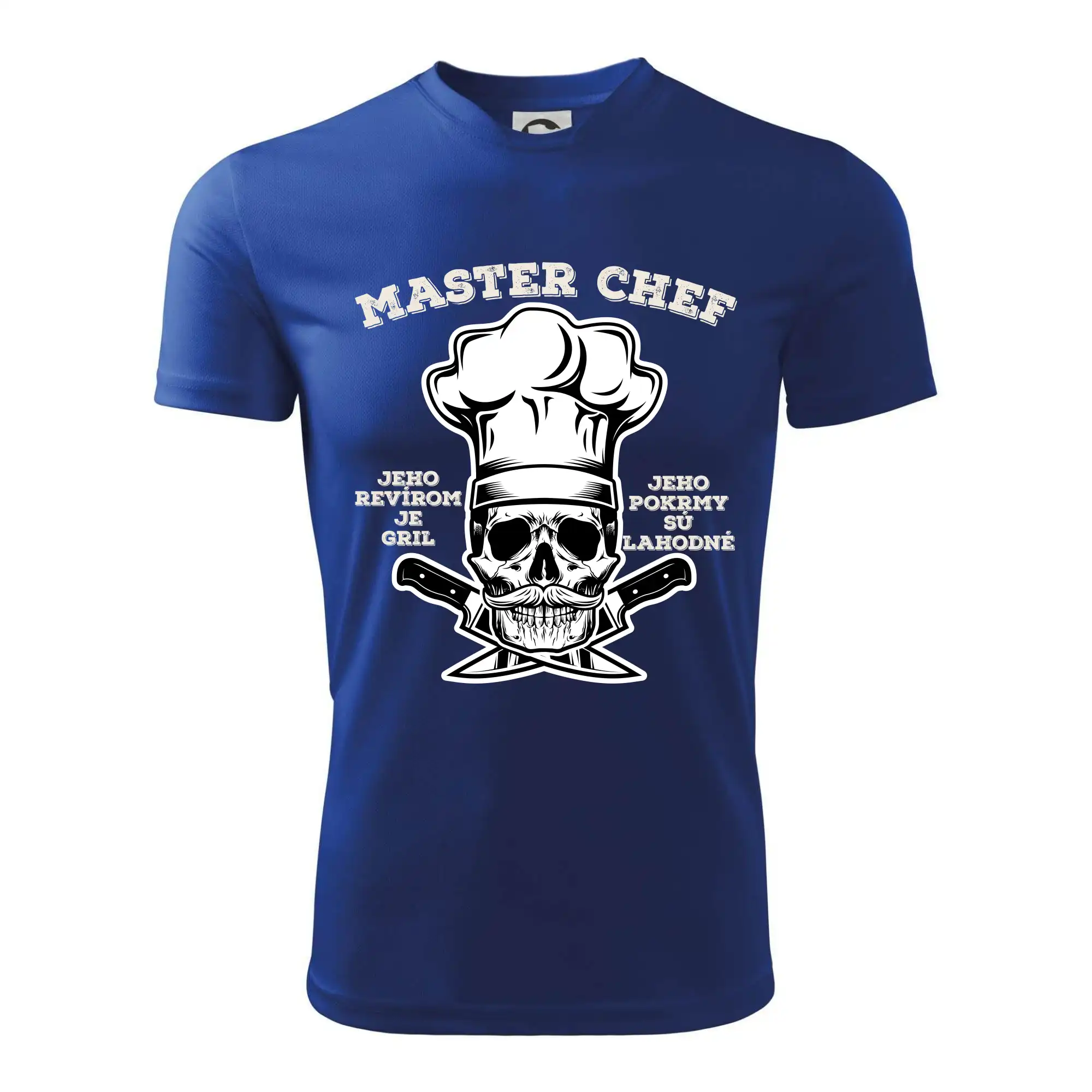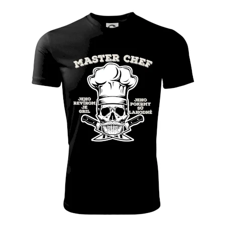 Tričko, na ktorom je kostra s nápisom Master chef, by si mal zaobstarať každý milovník varenia či grilovania. Či už je to tričko pre kuchára alebo majstra grilu na záhrade, jedlo bude určite chutnejšie! Tričko je vhodný darček pre každého, komu grilovanie a varenie nie sú cudzie.