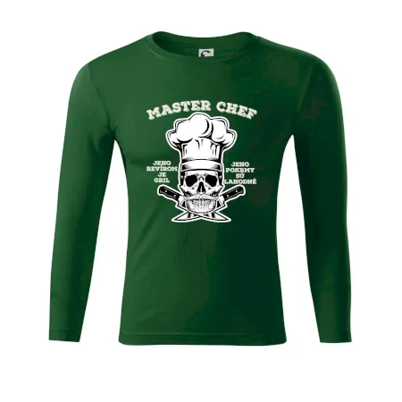 Tričko, na ktorom je kostra s nápisom Master chef, by si mal zaobstarať každý milovník varenia či grilovania. Či už je to tričko pre kuchára alebo majstra grilu na záhrade, jedlo bude určite chutnejšie! Tričko je vhodný darček pre každého, komu grilovanie a varenie nie sú cudzie.