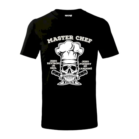 Tričko, na ktorom je kostra s nápisom Master chef, by si mal zaobstarať každý milovník varenia či grilovania. Či už je to tričko pre kuchára alebo majstra grilu na záhrade, jedlo bude určite chutnejšie! Tričko je vhodný darček pre každého, komu grilovanie a varenie nie sú cudzie.