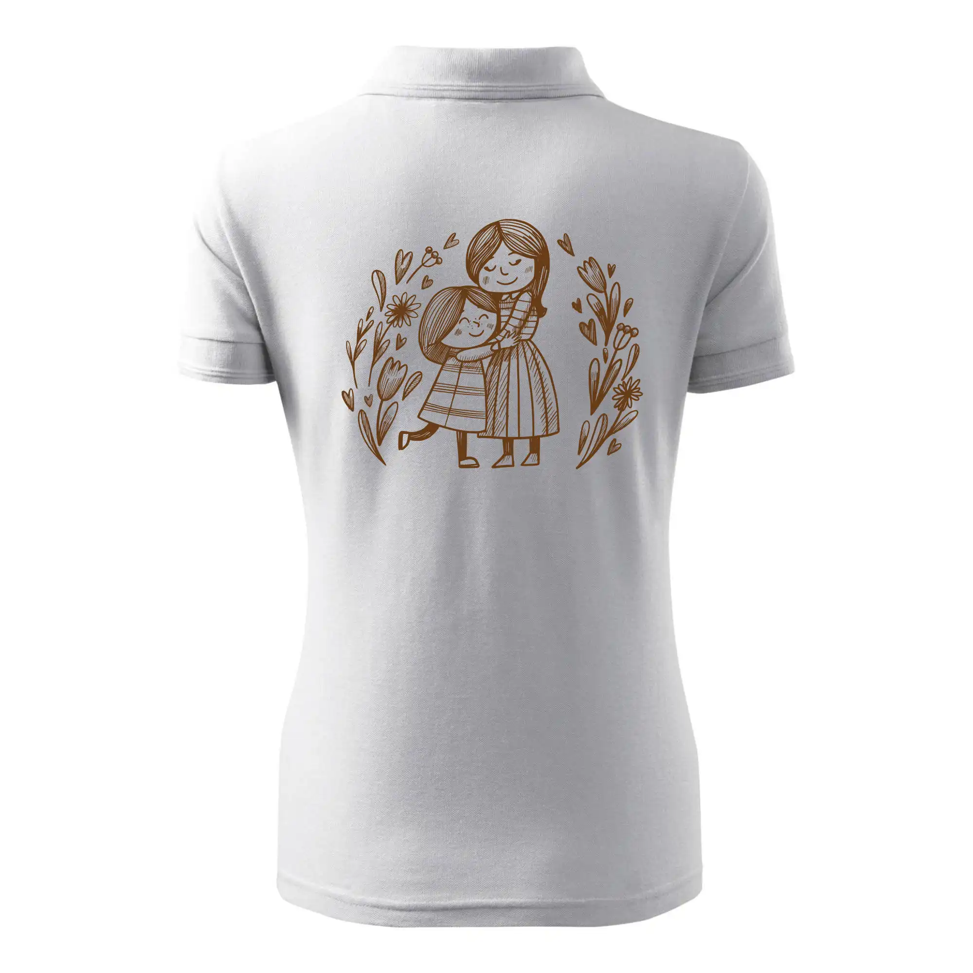 Tričko pre mamičku, na ktorom je mamička a dcéra v objatí. Na motíve dievča objíma matku, v okolí sú rozkvitnuté kvetiny. Materská láska sa dá vyjadriť aj tričkom. Motív, ktorý urobí Vašej mamičke veľkú radosť. Ukážte, že je pre Vás rodiny dôležitá.