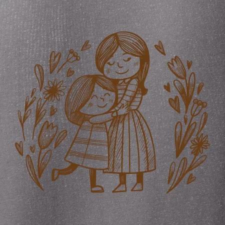Tričko pre mamičku, na ktorom je mamička a dcéra v objatí. Na motíve dievča objíma matku, v okolí sú rozkvitnuté kvetiny. Materská láska sa dá vyjadriť aj tričkom. Motív, ktorý urobí Vašej mamičke veľkú radosť. Ukážte, že je pre Vás rodiny dôležitá.