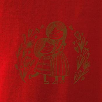 Tričko pre mamičku, na ktorom je mamička a dcéra v objatí. Na motíve dievča objíma matku, v okolí sú rozkvitnuté kvetiny. Materská láska sa dá vyjadriť aj tričkom. Motív, ktorý urobí Vašej mamičke veľkú radosť. Ukážte, že je pre Vás rodiny dôležitá.