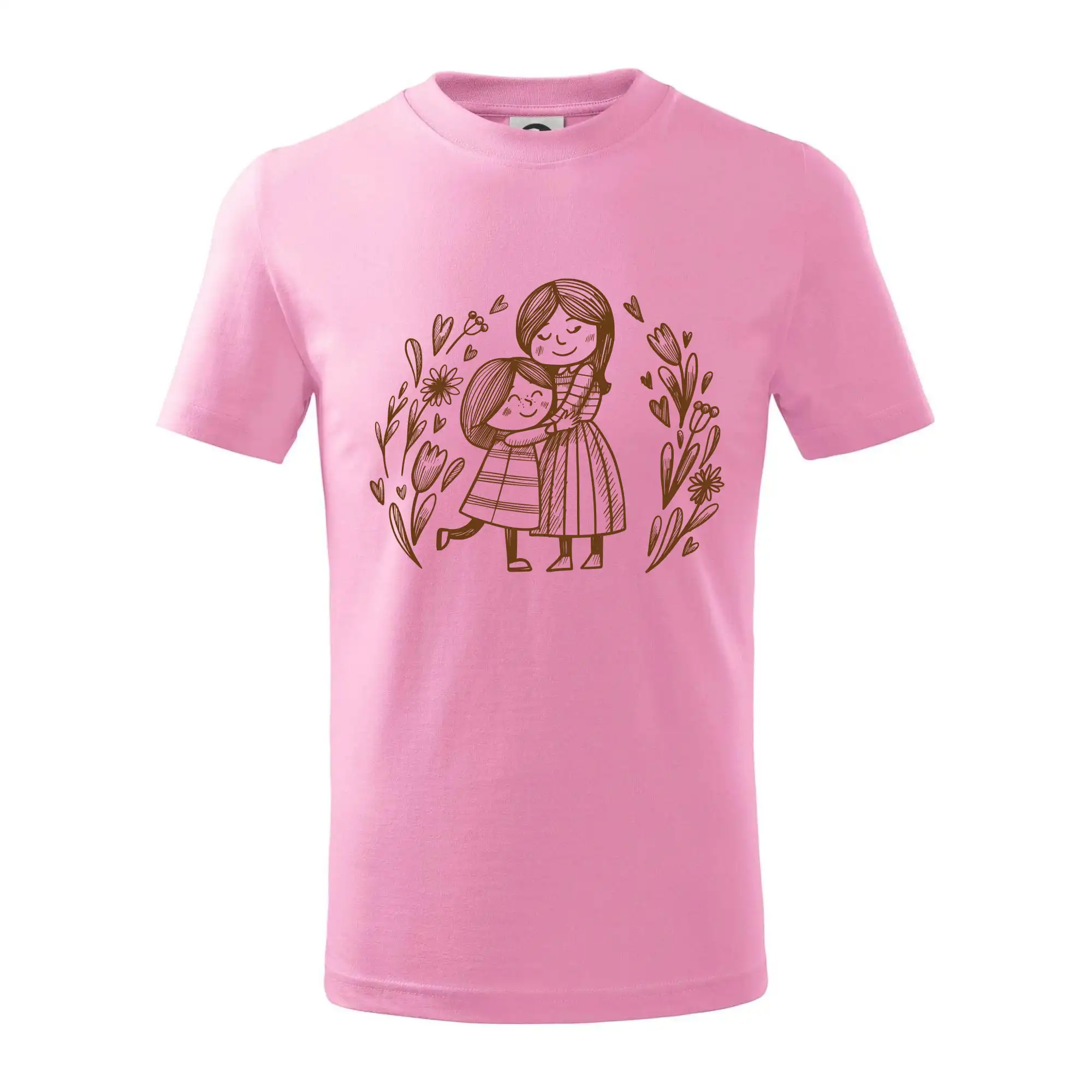 Tričko pre mamičku, na ktorom je mamička a dcéra v objatí. Na motíve dievča objíma matku, v okolí sú rozkvitnuté kvetiny. Materská láska sa dá vyjadriť aj tričkom. Motív, ktorý urobí Vašej mamičke veľkú radosť. Ukážte, že je pre Vás rodiny dôležitá.