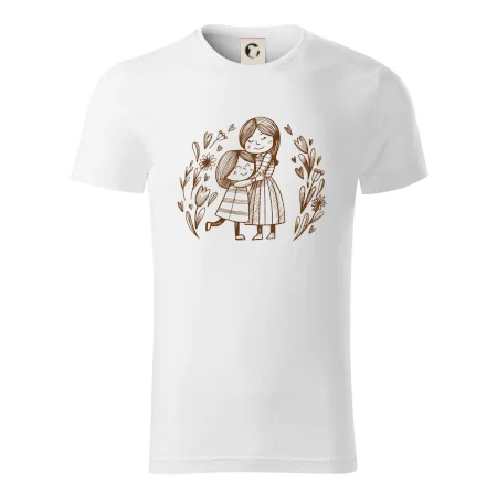 Tričko pre mamičku, na ktorom je mamička a dcéra v objatí. Na motíve dievča objíma matku, v okolí sú rozkvitnuté kvetiny. Materská láska sa dá vyjadriť aj tričkom. Motív, ktorý urobí Vašej mamičke veľkú radosť. Ukážte, že je pre Vás rodiny dôležitá.