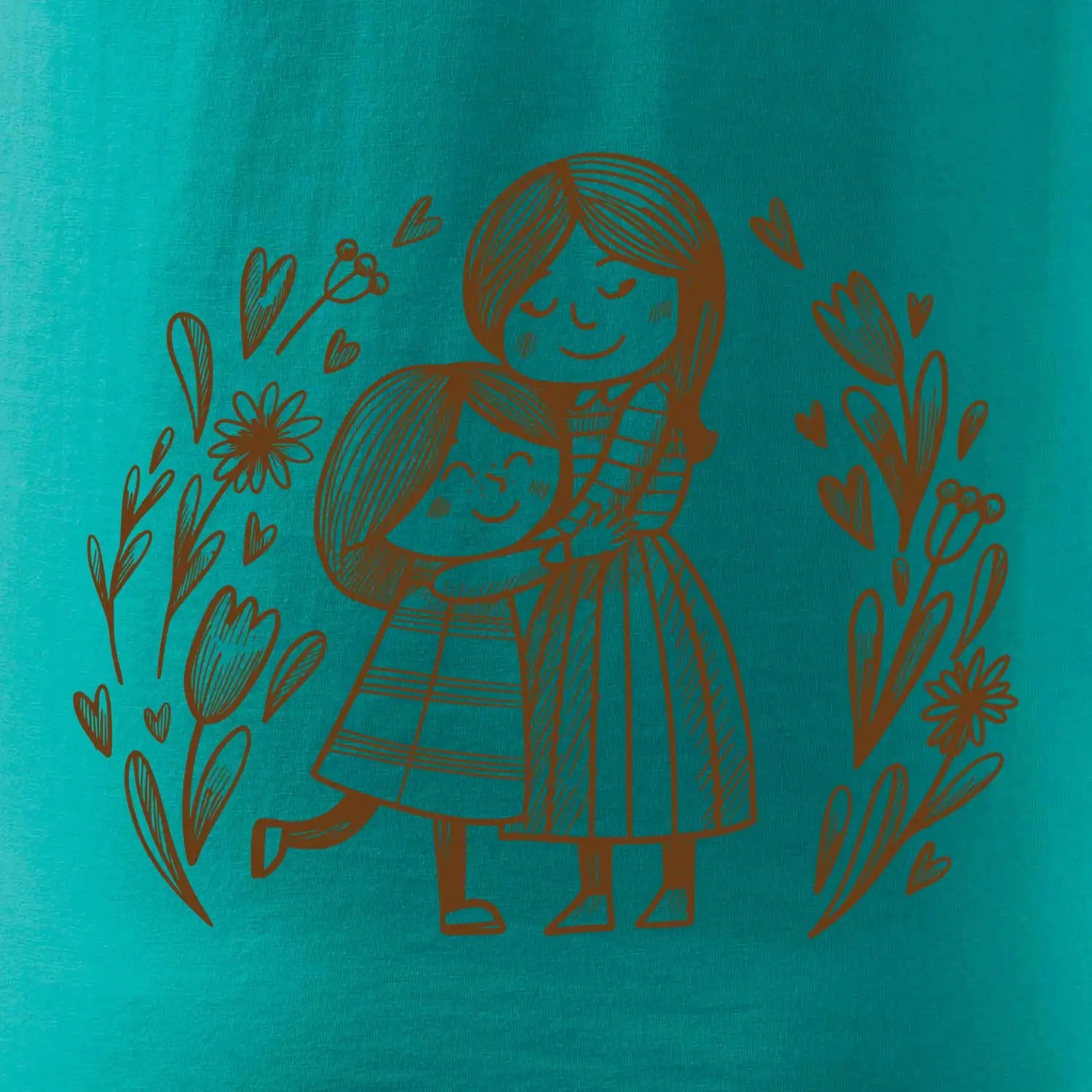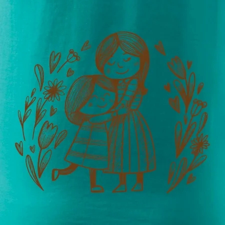 Tričko pre mamičku, na ktorom je mamička a dcéra v objatí. Na motíve dievča objíma matku, v okolí sú rozkvitnuté kvetiny. Materská láska sa dá vyjadriť aj tričkom. Motív, ktorý urobí Vašej mamičke veľkú radosť. Ukážte, že je pre Vás rodiny dôležitá.
