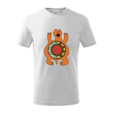 Detské tričko strednej gramáže s bočnými švami. Úzky priekrčník s prídavkom 5% elastanu. Vnútorná časť zadného priekrčníka začistená tkanou páskou. Spevnený ramenný šev.