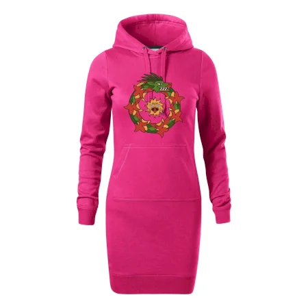 Dámske mikinové šaty MALFINI Snap 419 sú ideálnou voľbou pre ženy, ktoré hľadajú pohodlný a štýlový kúsok na voľný čas alebo každodenné nosenie. Ľahko vypasovaný strih s bočnými švami podčiarkuje ženskú siluetu, zatiaľ čo kapucňa s podšívkou a sťahovacou šnúrkou dodáva ležérny vzhľad. Šaty majú dĺžku nad kolená a sú vybavené našitým vreckom v štýle „klokanky“. Materiál je mäkký a príjemný na dotyk grâce à smesi bavlny a polyesteru s nepočesanou vnútornou stranou.