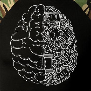 Motív, ktorý poteší každého mysliteľa a vedátora. Tričko pre vedca, na ktorom je mozog. Polovica je prevedená technicky, je tu elektrický obvod, káble a dráty...Tričko s mozgom poteší každého, kto je pravý vedec.