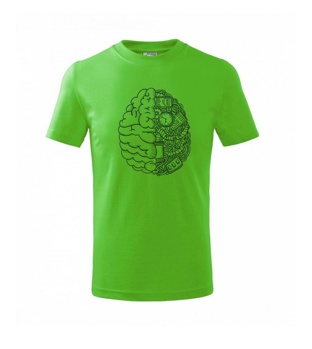 Motív, ktorý poteší každého mysliteľa a vedátora. Tričko pre vedca, na ktorom je mozog. Polovica je prevedená technicky, je tu elektrický obvod, káble a dráty...Tričko s mozgom poteší každého, kto je pravý vedec.