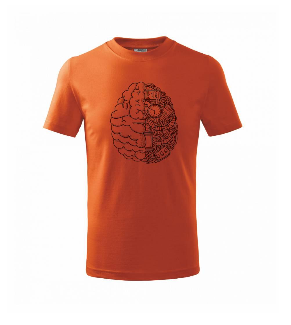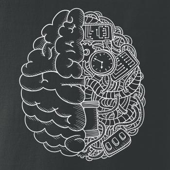 Motív, ktorý poteší každého mysliteľa a vedátora. Tričko pre vedca, na ktorom je mozog. Polovica je prevedená technicky, je tu elektrický obvod, káble a dráty...Tričko s mozgom poteší každého, kto je pravý vedec.
