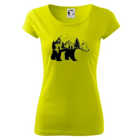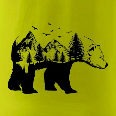 Tričko s medveďom je vhodné pre všetkých milovníkov zvierat a prírody. Hlavný motív je zviera - medveď. Hory a stromy na tričku nechýbajú tiež, je to predsa medveďov domov. tričko, na ktorom je medveď je vhodný darček pokiaľ si milovník zvierat.