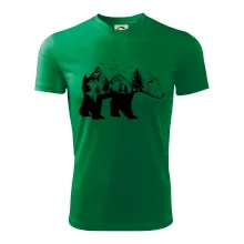Tričko s medveďom je vhodné pre všetkých milovníkov zvierat a prírody. Hlavný motív je zviera - medveď. Hory a stromy na tričku nechýbajú tiež, je to predsa medveďov domov. tričko, na ktorom je medveď je vhodný darček pokiaľ si milovník zvierat.