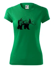 Tričko s medveďom je vhodné pre všetkých milovníkov zvierat a prírody. Hlavný motív je zviera - medveď. Hory a stromy na tričku nechýbajú tiež, je to predsa medveďov domov. tričko, na ktorom je medveď je vhodný darček pokiaľ si milovník zvierat.