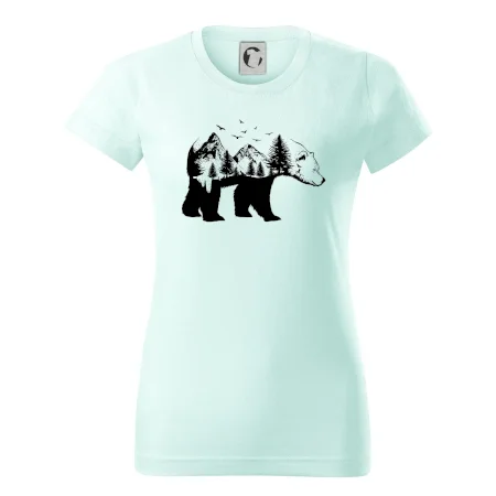 Tričko s medveďom je vhodné pre všetkých milovníkov zvierat a prírody. Hlavný motív je zviera - medveď. Hory a stromy na tričku nechýbajú tiež, je to predsa medveďov domov. tričko, na ktorom je medveď je vhodný darček pokiaľ si milovník zvierat.