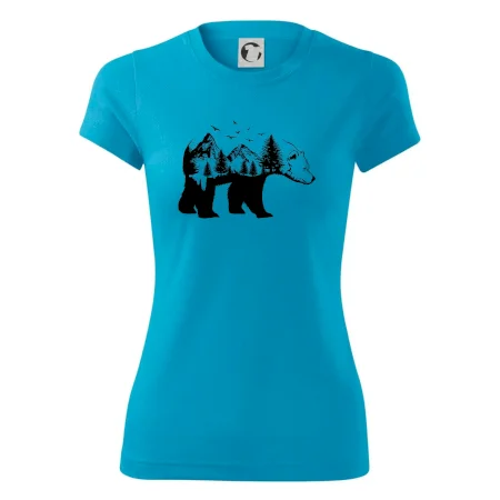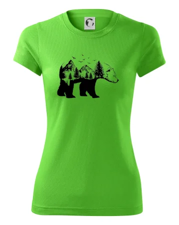 Tričko s medveďom je vhodné pre všetkých milovníkov zvierat a prírody. Hlavný motív je zviera - medveď. Hory a stromy na tričku nechýbajú tiež, je to predsa medveďov domov. tričko, na ktorom je medveď je vhodný darček pokiaľ si milovník zvierat.