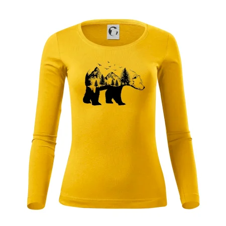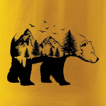 Tričko s medveďom je vhodné pre všetkých milovníkov zvierat a prírody. Hlavný motív je zviera - medveď. Hory a stromy na tričku nechýbajú tiež, je to predsa medveďov domov. tričko, na ktorom je medveď je vhodný darček pokiaľ si milovník zvierat.