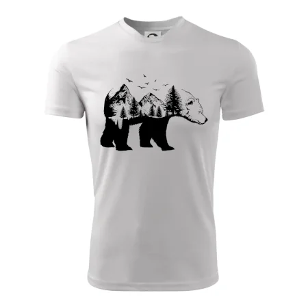 Tričko s medveďom je vhodné pre všetkých milovníkov zvierat a prírody. Hlavný motív je zviera - medveď. Hory a stromy na tričku nechýbajú tiež, je to predsa medveďov domov. tričko, na ktorom je medveď je vhodný darček pokiaľ si milovník zvierat.