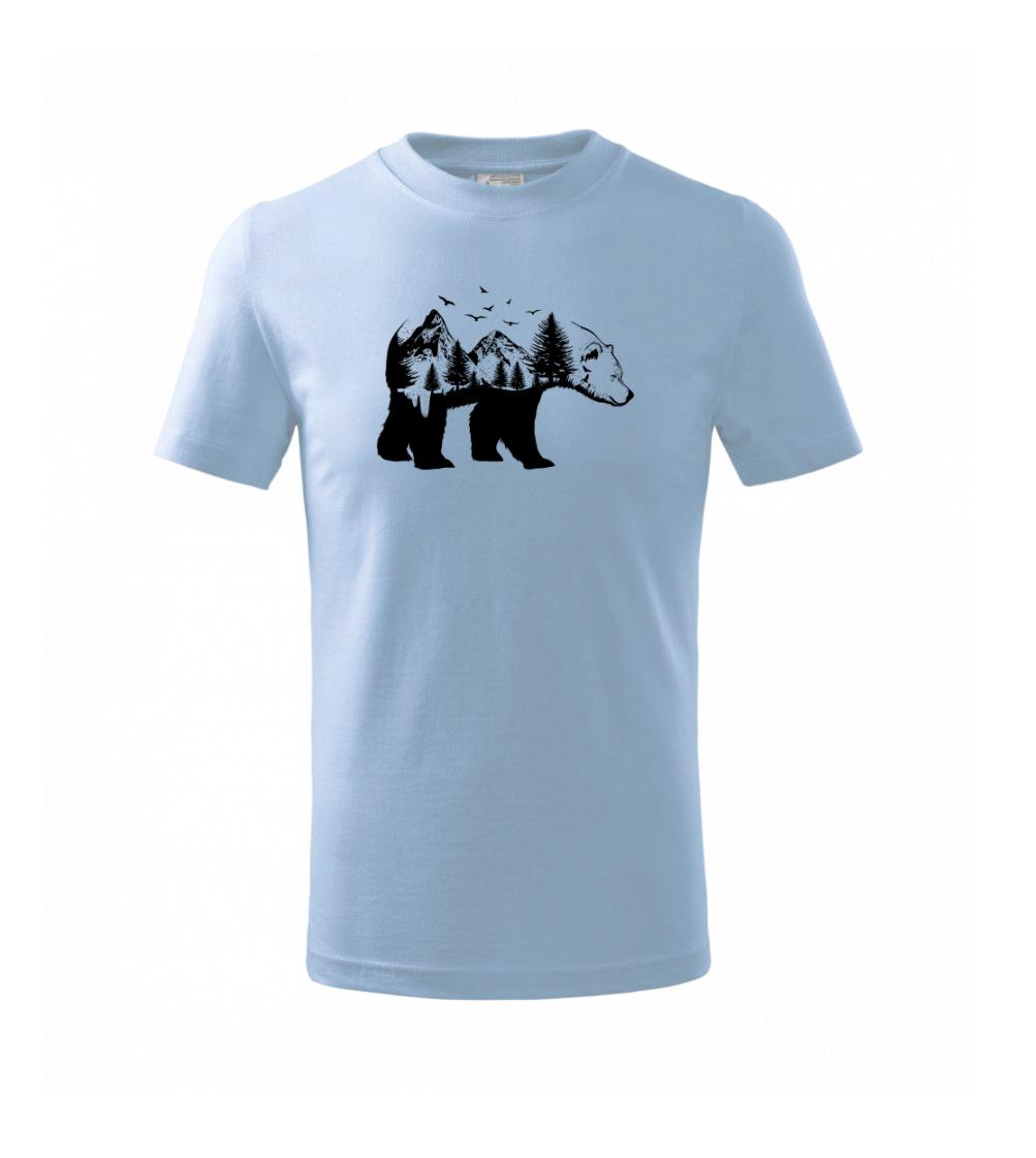 Tričko s medveďom je vhodné pre všetkých milovníkov zvierat a prírody. Hlavný motív je zviera - medveď. Hory a stromy na tričku nechýbajú tiež, je to predsa medveďov domov. tričko, na ktorom je medveď je vhodný darček pokiaľ si milovník zvierat.