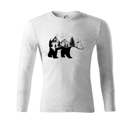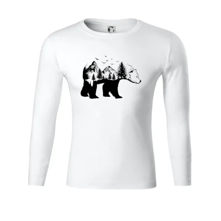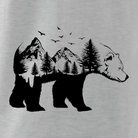 Tričko s medveďom je vhodné pre všetkých milovníkov zvierat a prírody. Hlavný motív je zviera - medveď. Hory a stromy na tričku nechýbajú tiež, je to predsa medveďov domov. tričko, na ktorom je medveď je vhodný darček pokiaľ si milovník zvierat.