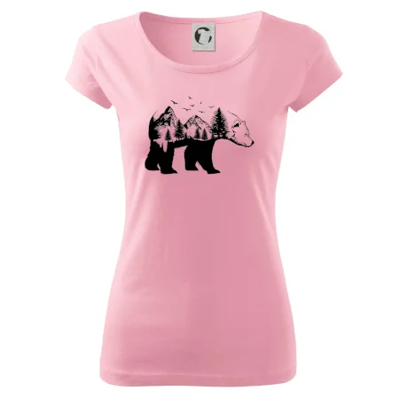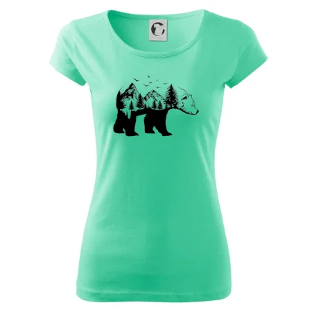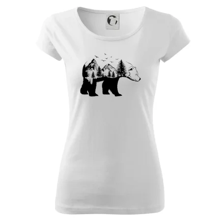Tričko s medveďom je vhodné pre všetkých milovníkov zvierat a prírody. Hlavný motív je zviera - medveď. Hory a stromy na tričku nechýbajú tiež, je to predsa medveďov domov. tričko, na ktorom je medveď je vhodný darček pokiaľ si milovník zvierat.