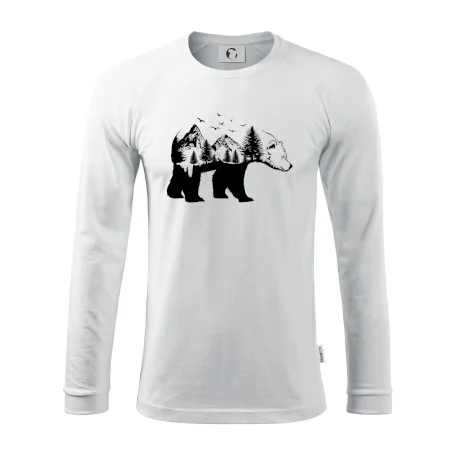 Tričko s medveďom je vhodné pre všetkých milovníkov zvierat a prírody. Hlavný motív je zviera - medveď. Hory a stromy na tričku nechýbajú tiež, je to predsa medveďov domov. tričko, na ktorom je medveď je vhodný darček pokiaľ si milovník zvierat.