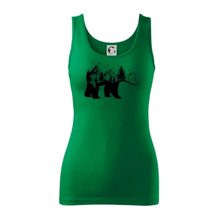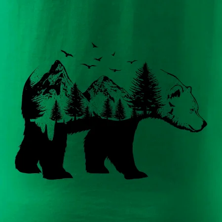 Tričko s medveďom je vhodné pre všetkých milovníkov zvierat a prírody. Hlavný motív je zviera - medveď. Hory a stromy na tričku nechýbajú tiež, je to predsa medveďov domov. tričko, na ktorom je medveď je vhodný darček pokiaľ si milovník zvierat.