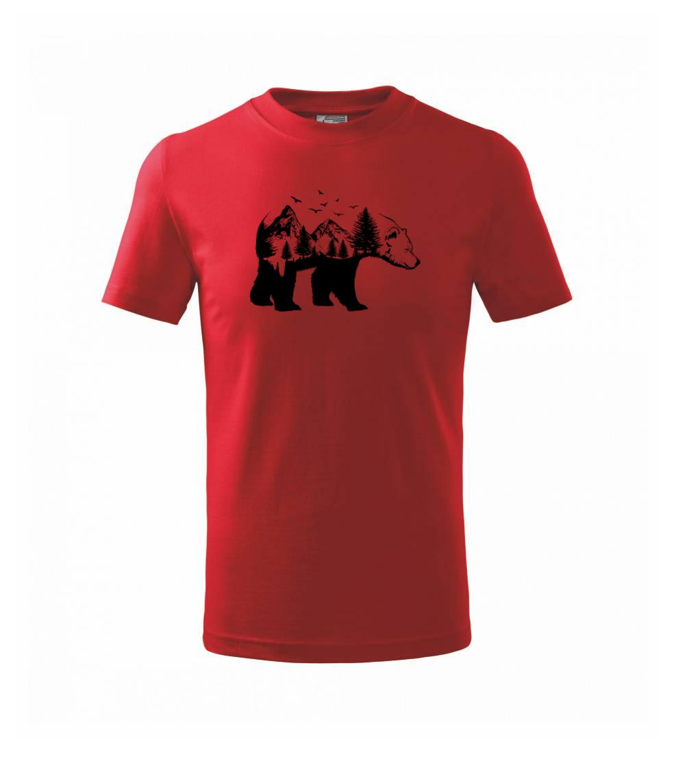 Tričko s medveďom je vhodné pre všetkých milovníkov zvierat a prírody. Hlavný motív je zviera - medveď. Hory a stromy na tričku nechýbajú tiež, je to predsa medveďov domov. tričko, na ktorom je medveď je vhodný darček pokiaľ si milovník zvierat.