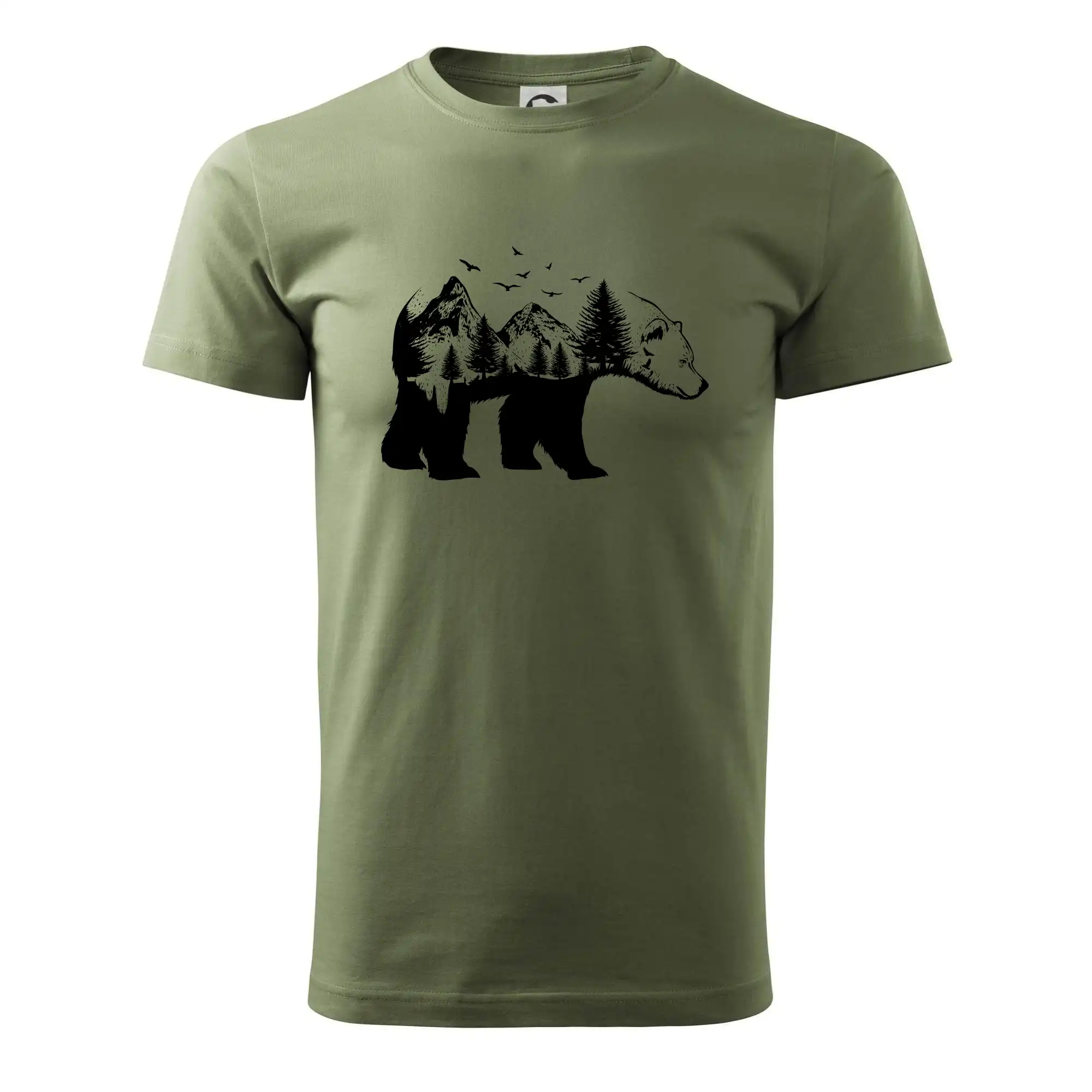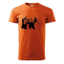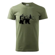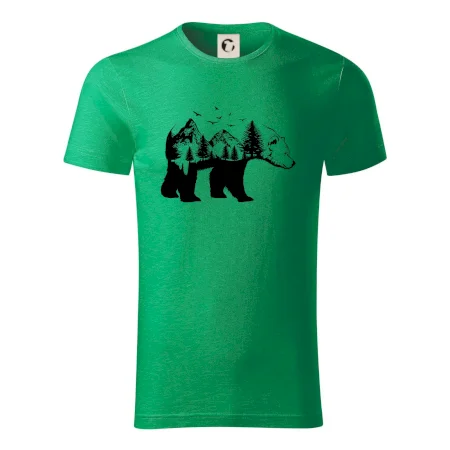 Tričko s medveďom je vhodné pre všetkých milovníkov zvierat a prírody. Hlavný motív je zviera - medveď. Hory a stromy na tričku nechýbajú tiež, je to predsa medveďov domov. tričko, na ktorom je medveď je vhodný darček pokiaľ si milovník zvierat.