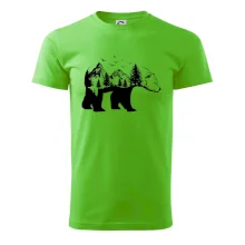 Tričko s medveďom je vhodné pre všetkých milovníkov zvierat a prírody. Hlavný motív je zviera - medveď. Hory a stromy na tričku nechýbajú tiež, je to predsa medveďov domov. tričko, na ktorom je medveď je vhodný darček pokiaľ si milovník zvierat.