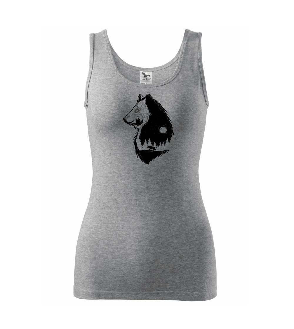 Tričko alebo zástera pre milovníka divokej prírody a prežitia v prírode. Medveď alebo vlk, obaja sú na tričku.