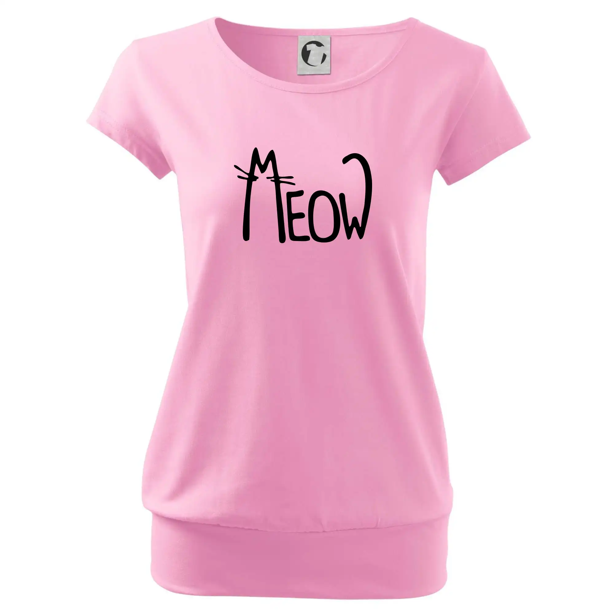 Trendové dámske tričko s veľmi krátkym rukávom, voľnejšieho strihu, v dolnom kraji všité do širokého lemu. Okrúhly priekrčník s úzkym lemom zo zhodného materiálu.