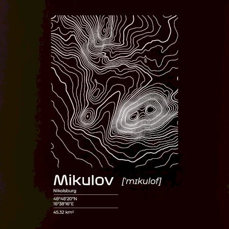 Mikulov - vrstevnice v obdĺžniku