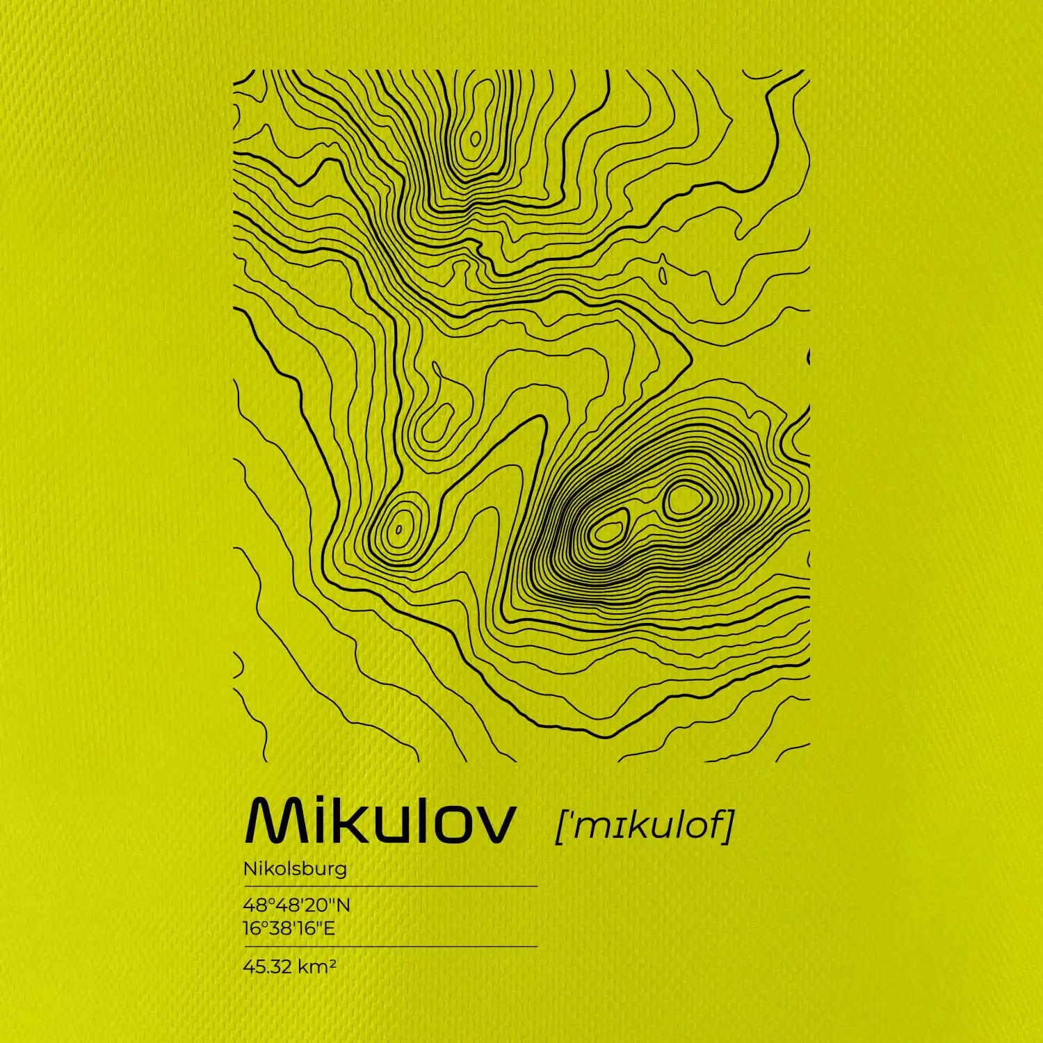 Mikulov - vrstevnice v obdĺžniku