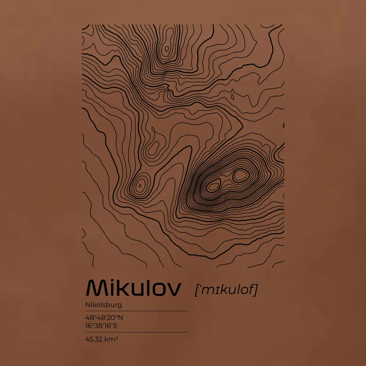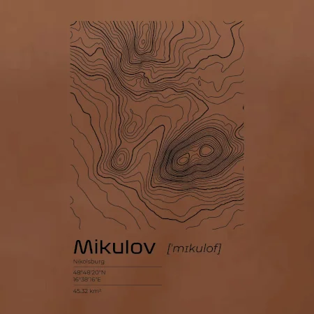 Mikulov - vrstevnice v obdĺžniku