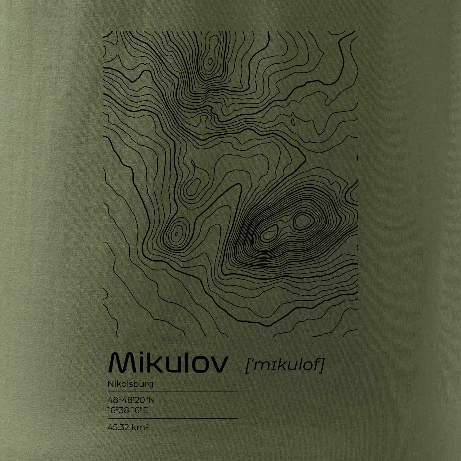 Mikulov - vrstevnice v obdĺžniku