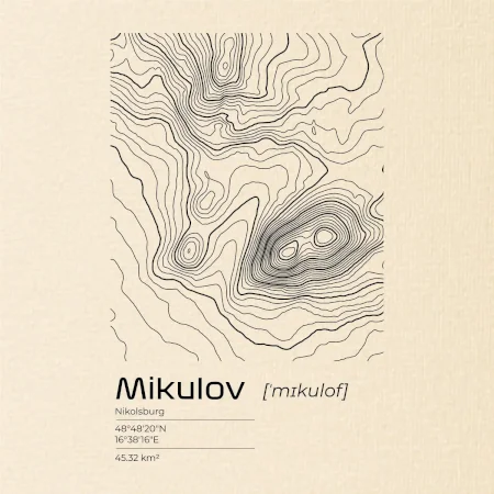 Mikulov - vrstevnice v obdĺžniku