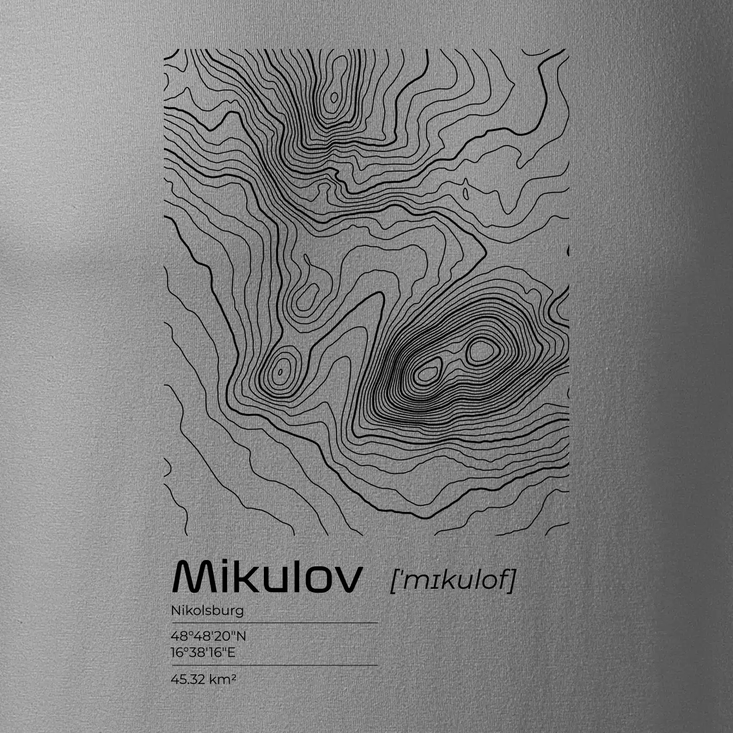Mikulov - vrstevnice v obdĺžniku