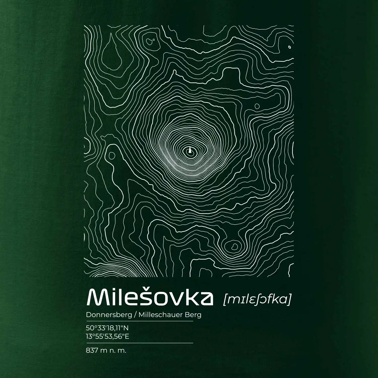 Milešovka - vrstevnice v obdĺžniku