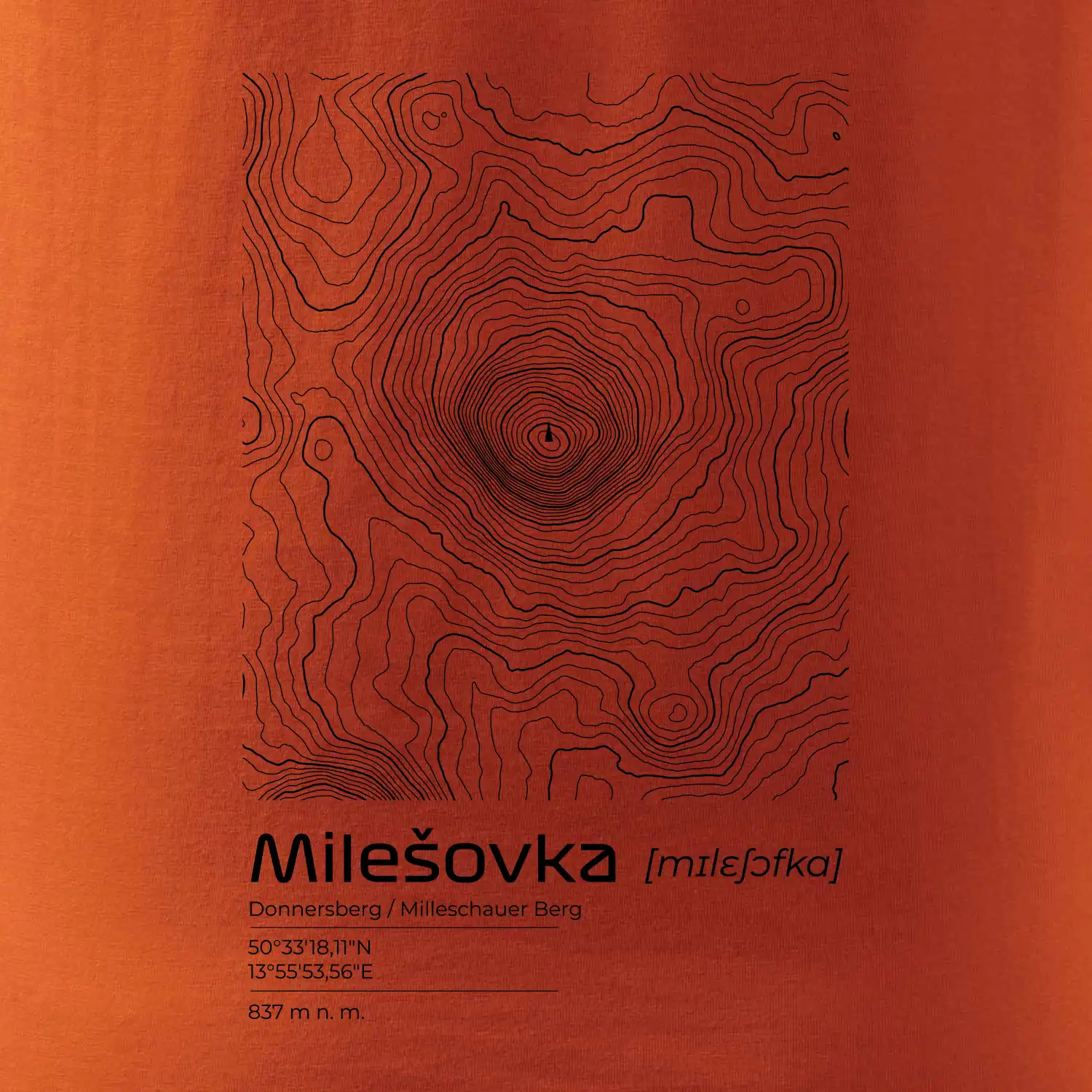 Milešovka - vrstevnice v obdĺžniku