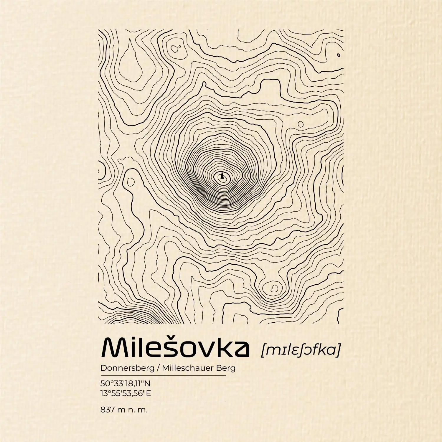 Milešovka - vrstevnice v obdĺžniku