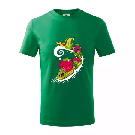 Detské tričko strednej gramáže s bočnými švami. Úzky priekrčník s prídavkom 5% elastanu. Vnútorná časť zadného priekrčníka začistená tkanou páskou. Spevnený ramenný šev.