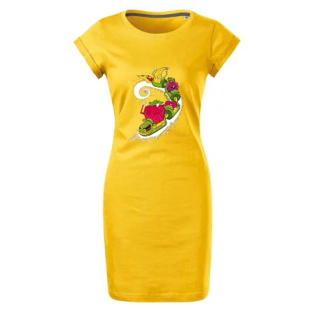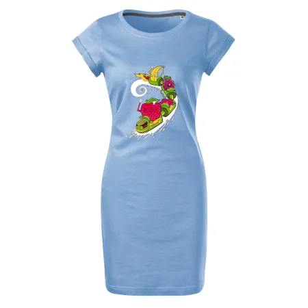 Tričkošaty MALFINI Freedom 178 sú ideálne pre ženy, ktoré hľadajú pohodlný a vzdušný kúsok na letné dni alebo voľnočasové aktivity. Voľný, ľahko tvarovaný strih s bočnými švami ponúka maximálne pohodlie a voľnosť pohybu. Dĺžka nad kolená a hlbší okrúhly výstrih dodávajú šatám svieži vzhľad, zatiaľ čo ohrnuté rukávy pripevnené šitím v štyroch bodoch pridávajú moderný detail. Kvalitný bavlnený materiál je mäkký a priedušný, s úzkym lemom výstrihu obsahujúcim elastan pre jednoduché obliekanie.